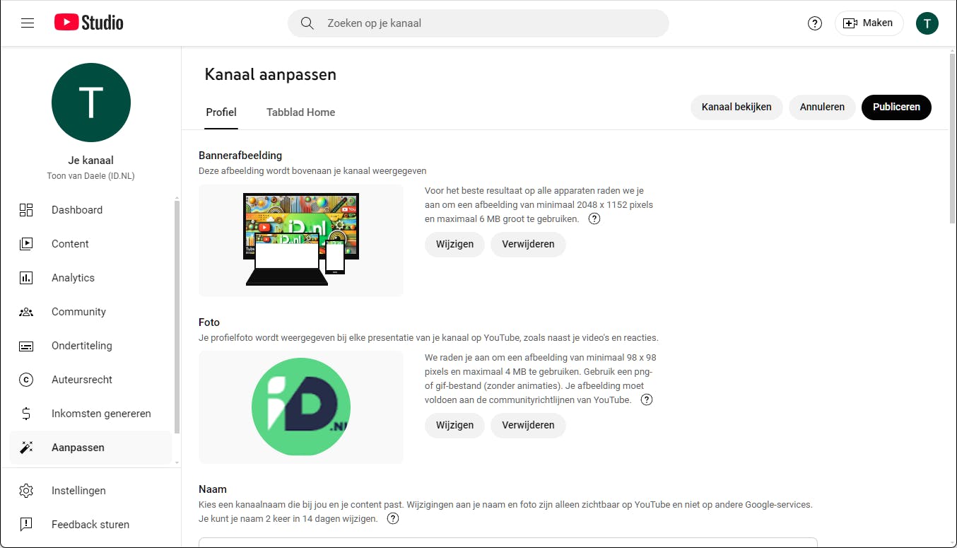 - Personaliseer je kanaal