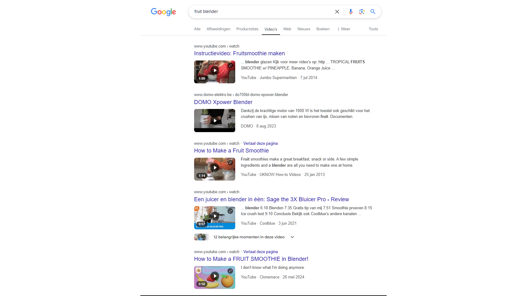 Ook Google’s zoekmachine neem YouTube-video’s in de zoekresultaten op.