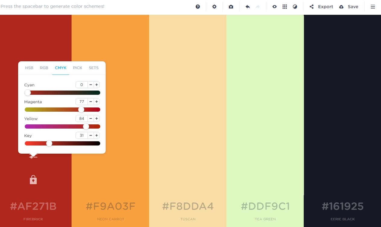 De webapp Coolors kan je alvast helpen bij het zoeken naar complementaire kleuren. Je kunt bijvoorbeeld vertrekken van de hoofdkleur van een afbeelding: klik linksonder op het knopje Adjust, selecteer het gewenste kleurformaat (HSB, RGB enzovoort) en stel de beoogde kleur in. Zet die vervolgens vast met het slot-icoontje. Telkens als je nu op de spatiebalk drukt, genereert Coolors een ander kleurenschema. Afgeleide tinten krijg je met de knop Toggle alternative shades. Die kun je eventueel gebruiken als je absoluut meer dan vier kleuren in je infografiek wilt.