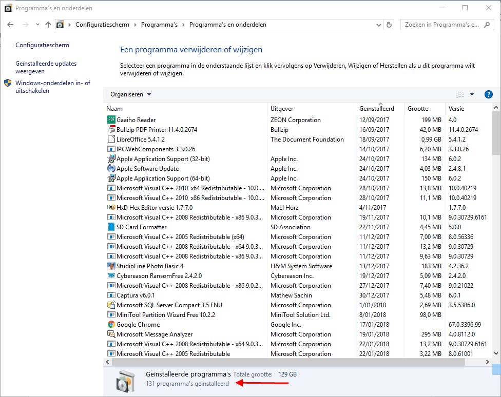 Een belangrijk criterium voor software-updaters is natuurlijk in hoeverre ze geïnstalleerde programma’s weten te detecteren en vooral ook in welke mate ze programma’s aanwijzen die niet langer up-to-date zijn. We kunnen daarvoor weliswaar afgaan op wat de producenten zelf beweren, maar we voeren toch liever onze eigen praktijktests uit! Daarom lieten we de tools los op twee systemen waarop – volgens Windows Programma’s en onderdelen – respectievelijk 131 en 76 programma’s waren geïnstalleerd. Overigens kun je ter test ook zelf oudere programmaversies installeren via een site als www.oldversion.com/windows of mogelijk nog via de site van de producent zelf.
