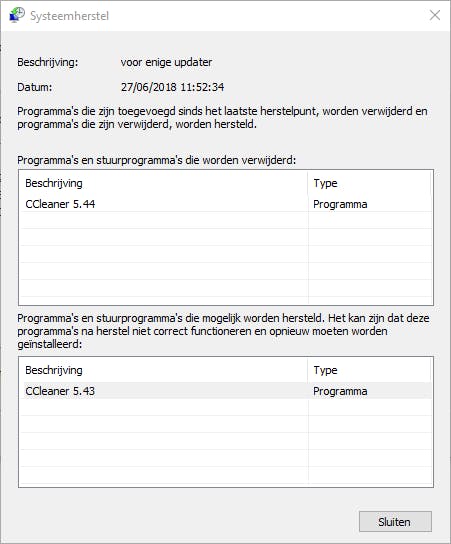 Wanneer je software updatet, zou je kunnen overwegen om eerst een systeemherstelpunt te maken. Dat kun je op elk moment forceren door de Windows-toets in te drukken, herstel in te tikken en Een herstelpunt maken te selecteren. Via de knop Maken kun je dan zo’n herstelpunt creëren. Je mag echter niet uit het oog verliezen dat een programma-update bepaalde bestanden en instellingen (deels) zal overschrijven of verwijderen, zodat je bij het terugrollen tot net voor het systeemherstelpunt zeker geen garanties hebt dat het betreffende programma ook probleemloos naar de vorige versie terugrolt. Om na te gaan op welke toepassingen zo’n terugrol een impact heeft, druk je op Windows-toets+R en voer je rstrui.exe uit. Stip Een ander herstelpunt selecteren aan, druk op Volgende, selecteer het gewenste herstelpunt en klik op Zoeken naar programma’s die worden beïnvloed.