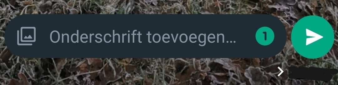 Kies zoals gewoonlijk een bestand uit om te versturen maar tik bij de laatste stap nog niet op het Verzend-icoontje. Naast Onderschrift toevoegen... zie je het getal 1 in een cirkeltje staan. Tik hierop en in beeld verschijnt een melding dat de foto is ingesteld voor eenmalige weergave. Het cijfertje kleurt groen om aan te geven dat het gelukt is.