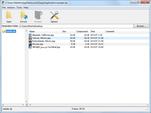 Dat zou een reden kunnen zijn om dit programma genadeloos af te schieten, ware het niet dat de makers heel duidelijk zijn over de reden waarom ze dit programma hebben gemaakt. In hun optiek heeft lang niet iedereen behoefte aan een programma dat zowel comprimeert als decomprimeert, in welk geval alle extra opties slechts vervuiling van de interface zijn. Interessant punt, maar dan mag de functie die het wel heeft wel verdraaid indrukwekkend zijn. En dat is ook zo! Dat heeft niet te maken met de grote hoeveelheid bestandstypes die het programma ondersteunt, maar vooral met de snelheid waarmee het uitpakken geschiedt. Met het grootste gemak pakten we vijf zipbestanden tegelijk uit. Vijf gaat langzamer dan één, maar niet zo tergend langzaam als, bijvoorbeeld WinRar het aanpakt. Oprecht indrukwekkend.