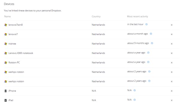 Tip 12 Dropbox toont gelinkte apparaten en andere toegang tot je account in één handig overzicht.