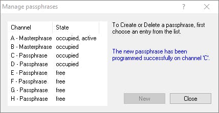 Er zijn in Challenger acht kanalen beschikbaar en elk kanaal kun je zien als een opslagplaats die telkens met een ander wachtwoord wordt beveiligd. Via de knop Manage passphrases koppel je een wachtwoord aan een geselecteerd kanaal. Wil je ook kanaal B gebruiken, dan doe je er wel goed aan het standaardwachtwoord (Berlin) door een eigen exemplaar te vervangen.