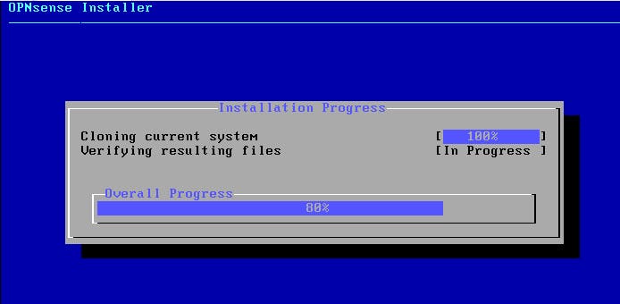 De ‘echte’ installatie van OPNsense is volop bezig.