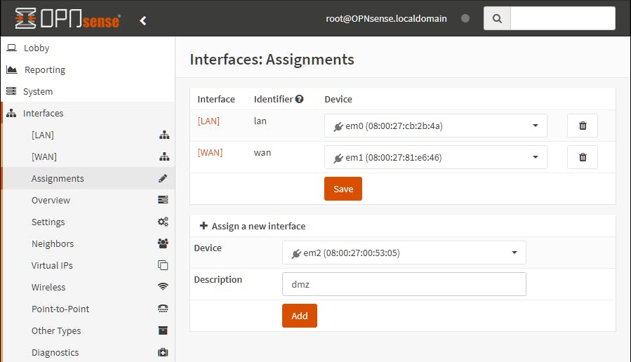 Als alles goed is ingesteld, ga dan naar Interfaces / Assignments. Hier controleer je welke interface met welk MAC-adres aan de LAN- of WAN-interface is gekoppeld. Heb je een extra netwerkinterface, bijvoorbeeld voor een DMZ of gastnetwerk, dan kun je die hier toewijzen. Selecteer de interface bij + Assign a new interface, klik op Add en dan op Save om de interface aan de rubriek Interfaces toe te voegen. Open de nieuwe interface en vink Enable Interface en eventueel ook Prevent interface removal aan. Stel IPv4 Configuration Type in op Static IPv4 en geef een ip-adres, zoals 192.168.2.1 / 24. Bevestig met Save en Apply changes.