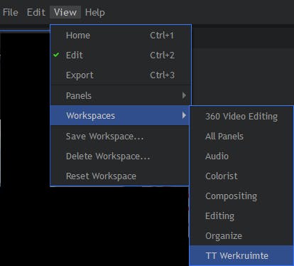 Vanuit het View-menu kun je deze interface nog op allerlei manieren personaliseren. Met de optie Panels bepaal je zelf welke panelen je wilt zien, of je selecteert via Workspaces een kant-en-klare werkruimte met de bijbehorende panelen. Wijzelf verkiezen hier de werkruimte Editing, maar het staat je vrij die aan te passen en je eigen werkruimte vast te leggen met Save Workspace - die komt dan automatisch beschikbaar in de lijst met Workspaces.