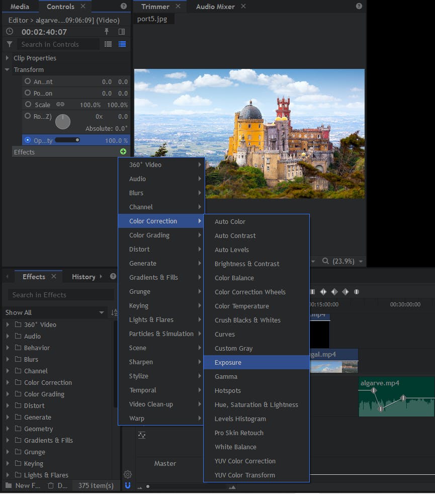 Deze techniek laat zich ook prima toepassen op videoclips: in het Controls-paneel krijg je via het groene plusknopje dan toegang tot talrijke effecten.