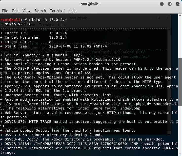 nikto -h <ip-adres-metasploitable>