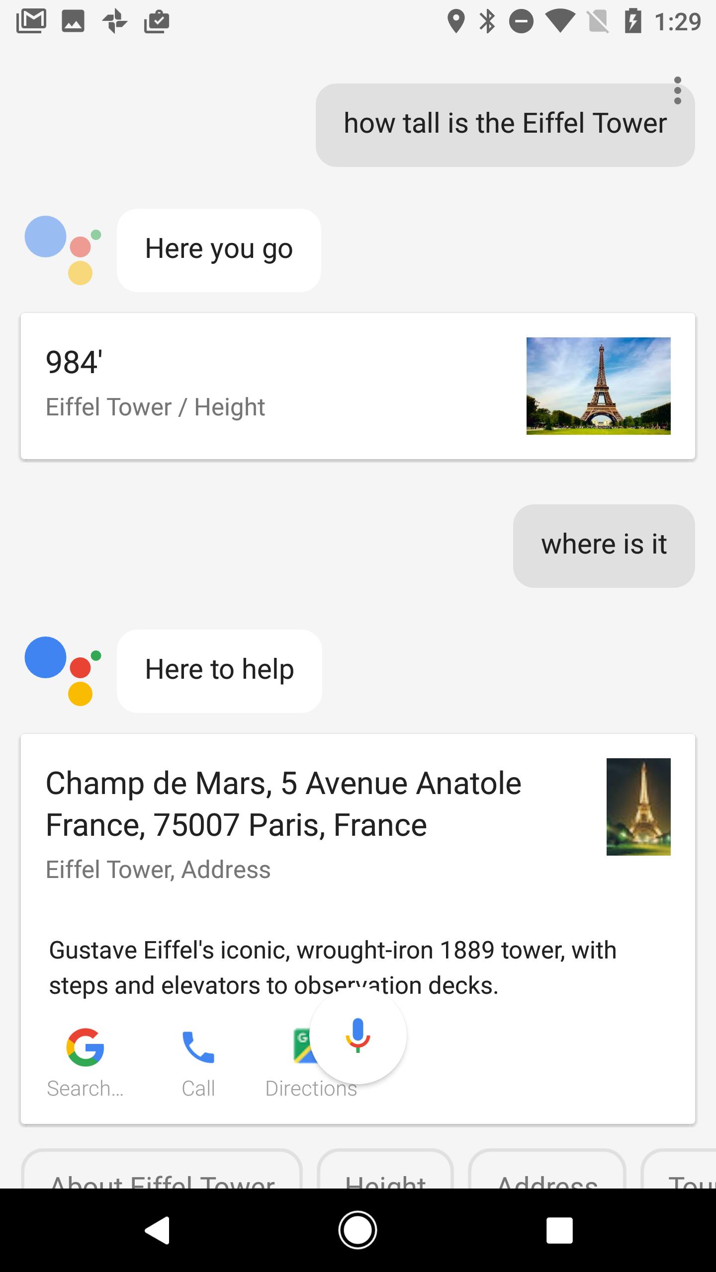 Hoe de Google Assistant jou nu van dienst kan zijn? Onder andere bij het beantwoorden van prangende vragen en het opzoeken van informatie. Assistant is de opvolger van Google Now en is zich veel bewuster van context. Vraag bijvoorbeeld (wel in het Engels!) ‘Hoe hoog is de Eiffeltoren’ en de assistent geeft het antwoord ‘300 meter’. In hetzelfde gesprek kun je vragen wanneer de bouw is gestart, waar de toren staat en wie hem heeft ontworpen. Je hoeft niet steeds expliciet te benoemen dat je vraag betrekking heeft op de Eiffeltoren.