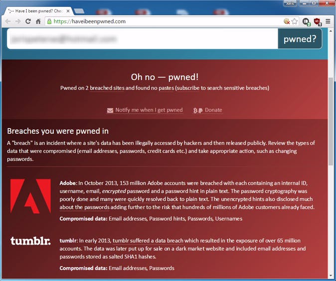 Een handig hulpmiddeltje om na te gaan of jouw gegevens zijn buitgemaakt door hackers is de website haveibeenpwned.com. Op deze site kun je je e-mailadres dat je vaak gebruikt om je bij internetdiensten aan te melden invoeren om te kijken of hij in een van de buitgemaakte databases zit. Lees ook: 20 tips om een pc-hack te herkennen en te voorkomen.