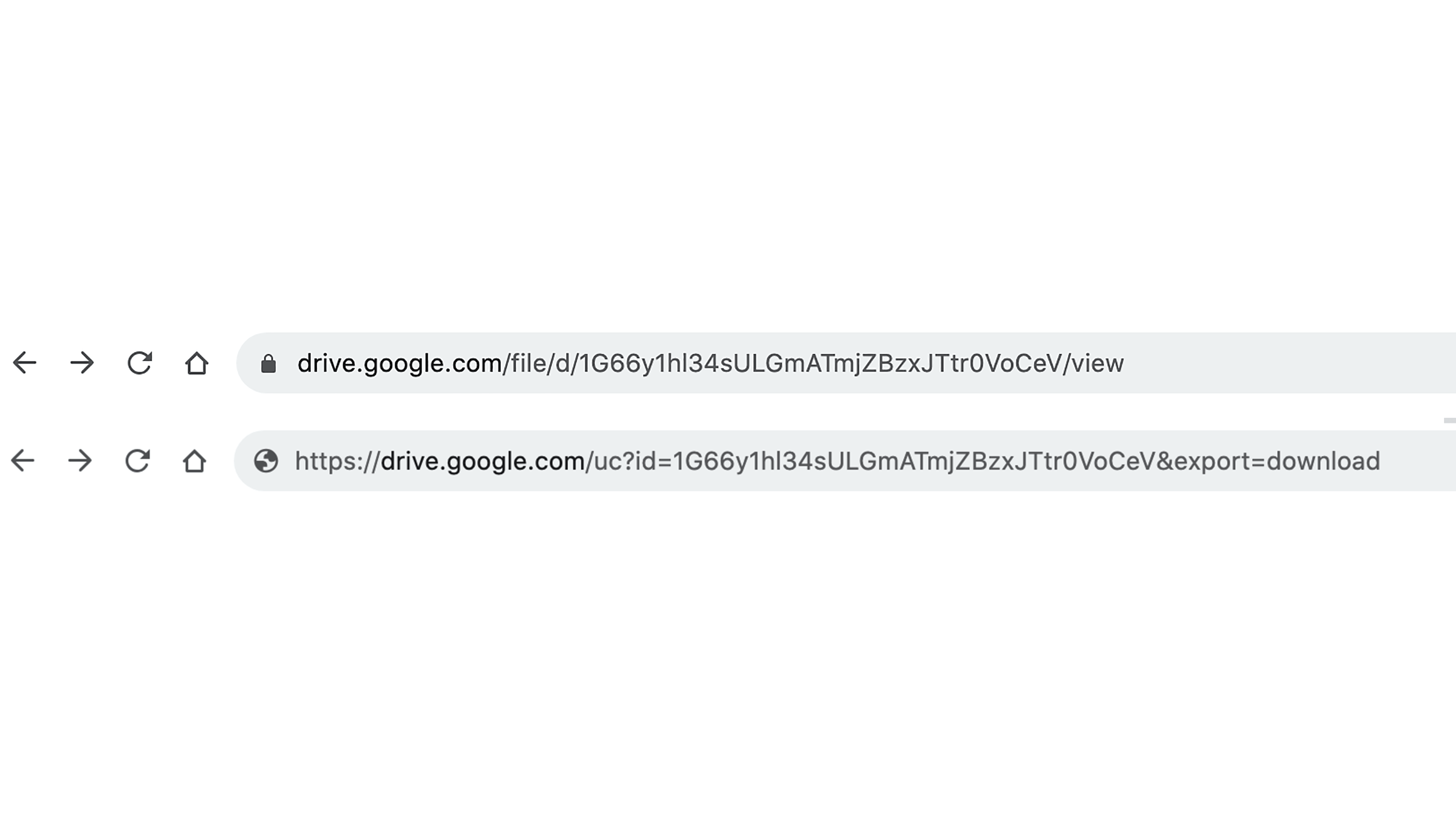 De link zal er ongeveer zo uitzien: https://drive.google.com/file/d/1G66y1hl34sULGmATmjZBzxJTtr0VoCeV/view?usp=sharing. Elk bestand op Google Drive heeft een unieke bestands-ID in deze link. Dat is de tekst tussen d/ en /view. In ons voorbeeld is dat dus 1G66y1hl34sULGmATmjZBzxJTtr0VoCeV. Vervang nu het stukje file/d/ in de link door uc?id=. Daarna verwijder je de sectie na de bestands-ID, inclusief /view en typ je &export=download in plaats van de tekst die je hebt verwijderd. Zo zou dit voorbeeld er dus moeten uitzien: https://drive.google.com/uc?id=1G66y1hl34sULGmATmjZBzxJTtr0VoCeV&export=download. Iedereen die toegang heeft tot deze link, kan het bestand rechtstreeks ophalen door op deze link te klikken.