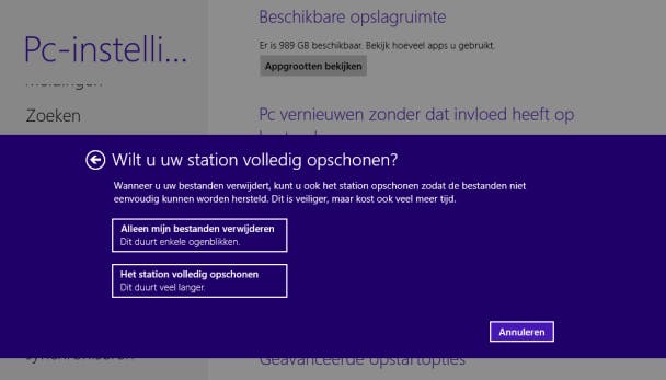 Kies voor de optie Het station volledig opschonen, als je niet wil dat anderen je gegevens kunnen terughalen.