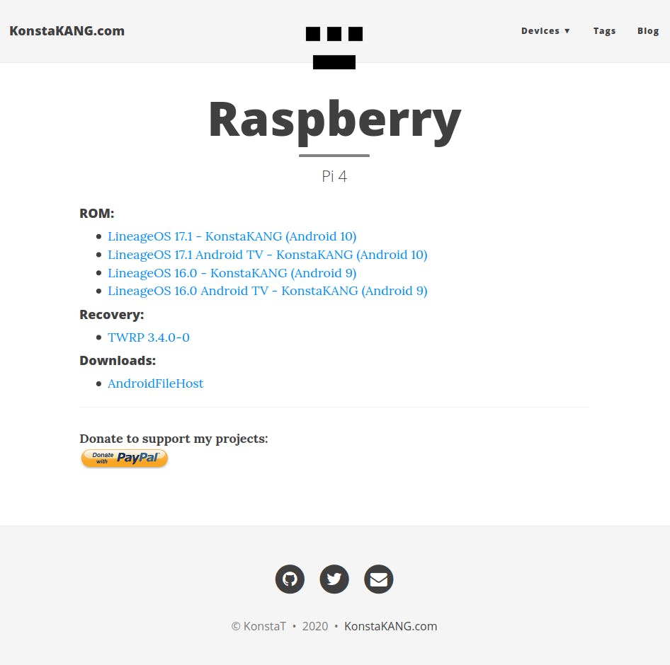 Als je Android op je Raspberry Pi wilt draaien, heb je een aangepaste versie van LineageOS nodig, de bekendste custom rom voor Android-telefoons. Je vindt die aangepaste versie op de website van KonstaKANG, een ontwikkelaar die ook actief is op het Android-forum XDA-Developers. Met de hulp van anderen heeft hij LineageOS aangepast zodat die op de Raspberry Pi 3B, 3B+ en 4B (met minstens 2 GB geheugen) draait. Eerdere modellen van de Raspberry Pi worden niet ondersteund.