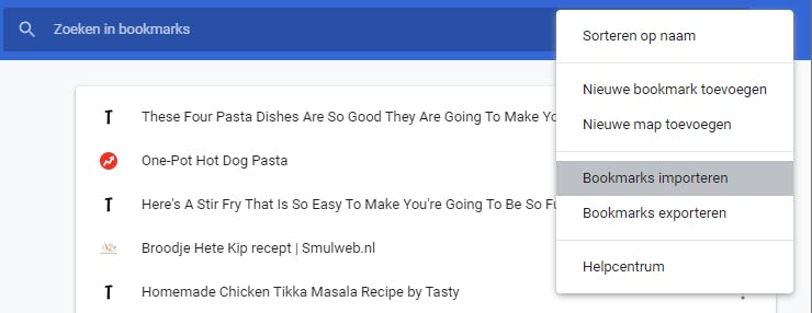 In hetzelfde menu vind je ook de optie Bookmarks importeren, dus als je juist je favoriete pagina’s uit andere browsers wilt overzetten naar Chrome, dan moet je hier zijn.