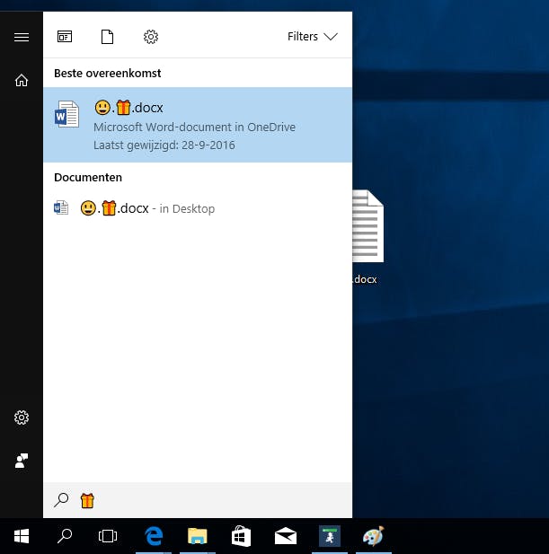 Voor chatberichten via Skype kan het een leuke toevoeging als je emoji's gebruikt. Maar de toetscombinatie werkt in ieder invoerveld, dus bijvoorbeeld ook in het zoekvenster in de Verkenner, in het startmenu en de adresbalk van Edge. En ook als je een nieuw bestand aanmaakt, kun je gebruikmaken van emoji's, waardoor je dus ook de meest creatieve bestandsnamen kunt maken. Let wel: bestanden met daarin emojis worden in Windows 7 niet goed zichtbaar, de naam van het bestand verandert dan in nietszeggende blokken.