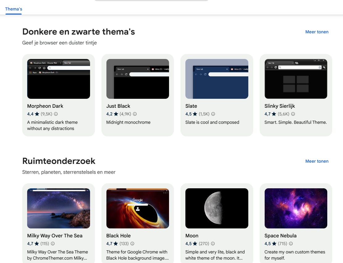 In de Chrome Web Store vind je ontzettend veel thema’s.