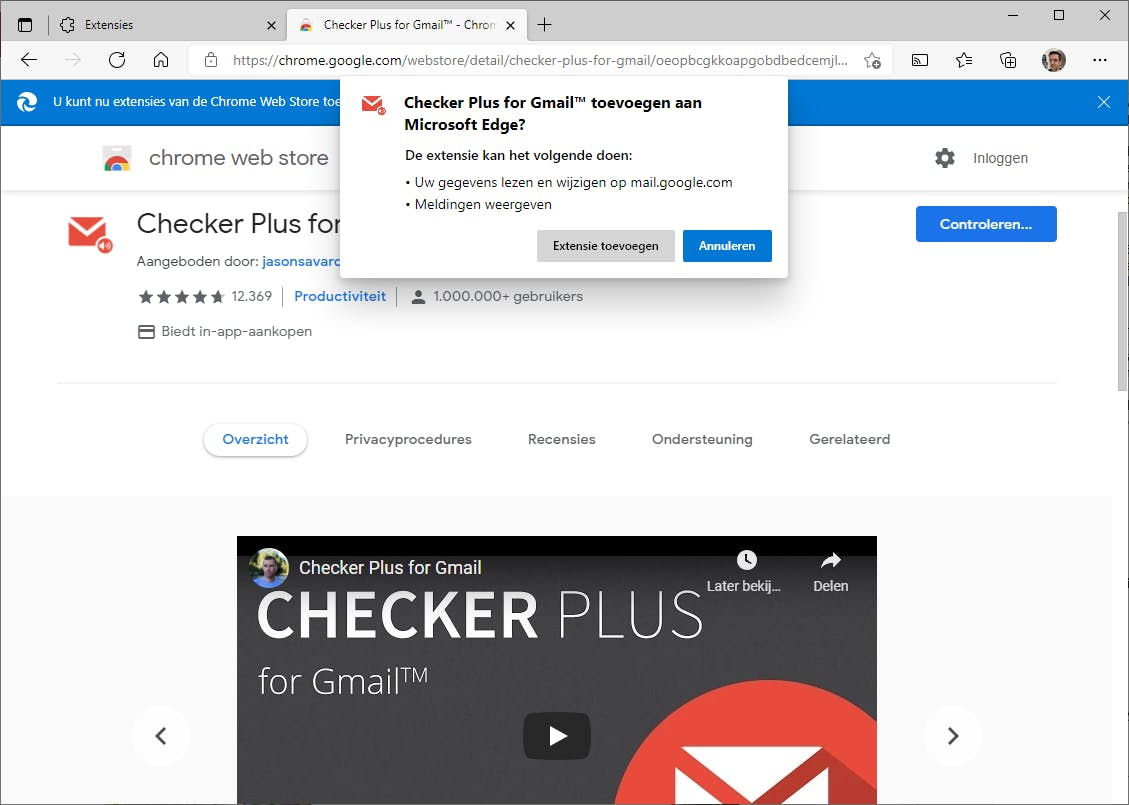 Sinds begin 2020 vormt de Chromium-broncode de fundering van Edge. De populaire browser Google Chrome is gebaseerd op dezelfde broncode. Een groot voordeel hiervan is dat je plug-ins van Chrome óók in Edge kunt installeren. Klik op Instellingen en meer / Extensies en activeer linksonder de schakelaar achter Sta extensie van andere winkels toe. Bevestig met Toestaan.