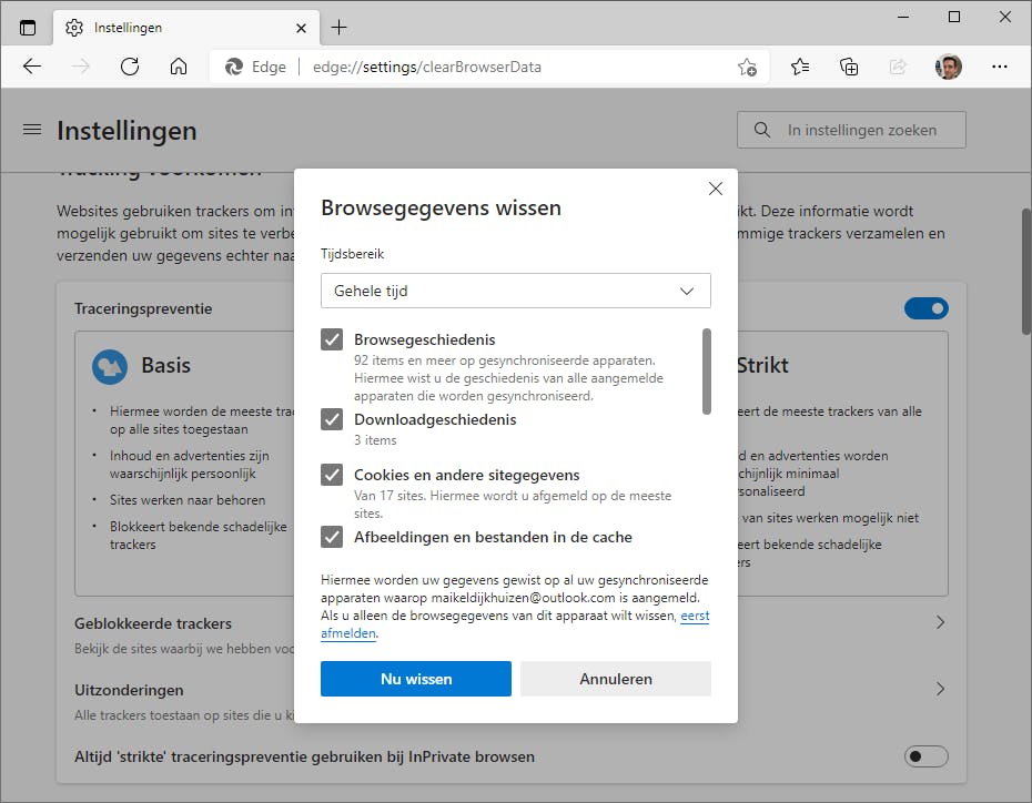 Soms wil je surfsporen graag uit Edge wissen, bijvoorbeeld wanneer je online speurt naar een cadeau voor je partner of (klein)kinderen. Navigeer achtereenvolgens naar Instellingen en meer / Instellingen / Privacy, zoeken en services en klik achter Browsegegevens nu wissen op Kiezen wat u wilt wissen. Je bepaalt zelf welke onderdelen je verwijdert. Naast Browsegeschiedenis vink je bijvoorbeeld Downloadgeschiedenis en Cookies en andere sitegegevens aan. Bevestig met Nu wissen.