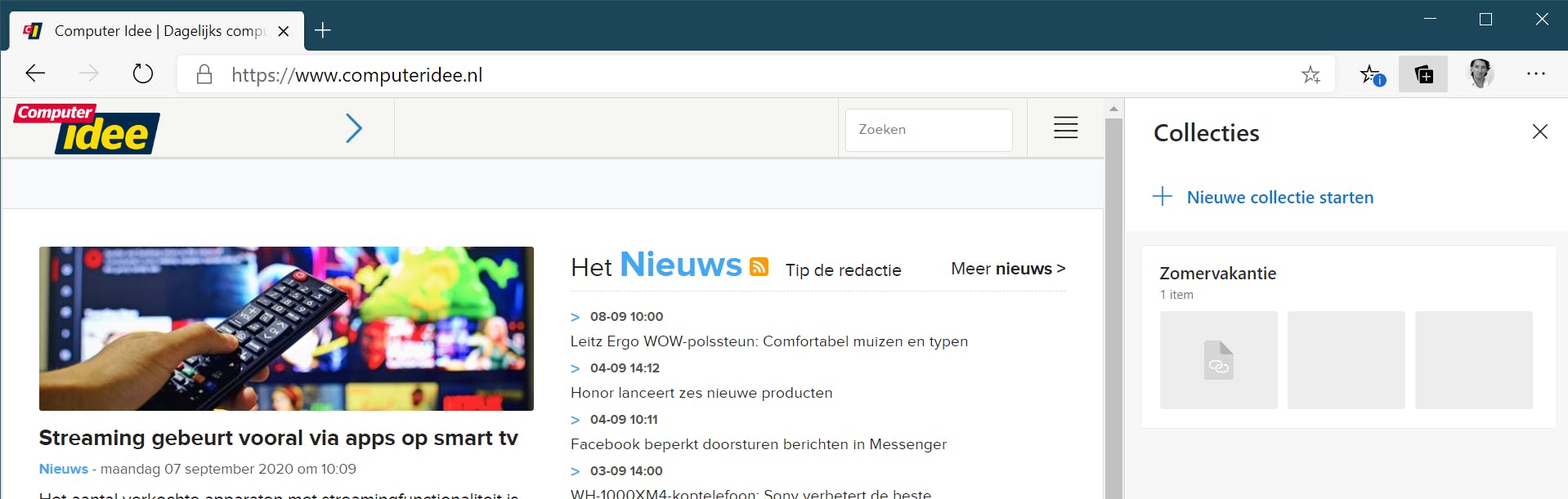 In Microsoft Edge kun je gebruikmaken van zogeheten collecties. Hiermee kun je websites of gedeelten daarvan, bijvoorbeeld een stuk tekst of een afbeelding, opslaan en later als één geheel weer opvragen.