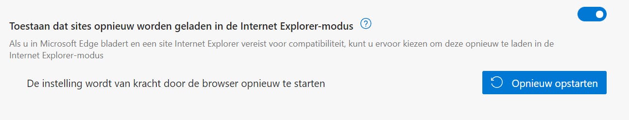 Bezoek je nog websites die niet correct worden getoond in Edge, dan kun je gebruikmaken van de Internet Explorer-modus. Hierbij wordt een compatibiliteitsweergave gebruikt, zodat de site wel goed werkt. In de sectie Standaardbrowser zet je de schuif op Aan bij Toestaan dat sites opnieuw worden geladen in de Internet Explorer-modus.