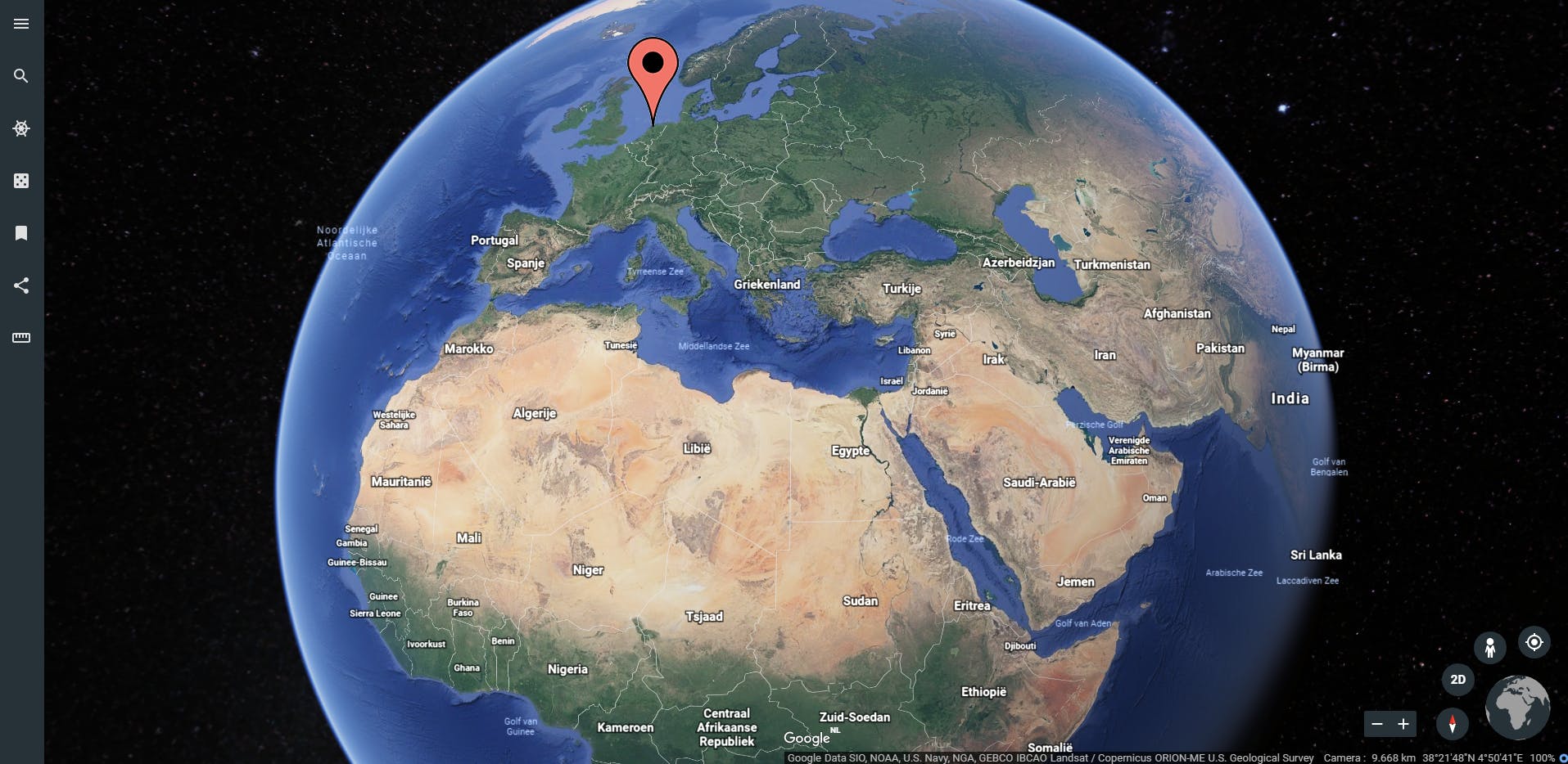 De grens tussen Google Maps en Google Earth is intussen behoorlijk vervaagd. Overschakelen van Google Maps naar een Earth-weergave kan heel eenvoudig door het Satelliet-pictogram aan te klikken. Met het 3D-pictogram kun je een virtuele vlucht over de ganse aardbol maken en wanneer je de Ctrl-toets ingedrukt houdt, kantelt het beeld om zijn as. In een Chrome-browser kun je de nieuwste versie van Google Earth bekijken, inclusief 3D- en Street View-beelden. Klik hier het hamburgerpictogram aan en kies Instellingen als je de Vlieganimatiesnelheid wilt aanpassen of wanneer je – op een krachtige pc – een grotere geheugencache wilt instellen voor nog meer details.