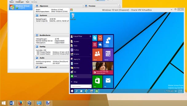 Er is ook een vierde optie voor de installatie van Windows 10: door het te installeren in een virtuele machine. Bij een virtuele machine draai je in feite een computersysteem in een Windows-venstertje. Heel handig om in je eigen omgeving toch even Windows 10 uit te proberen. Een virtuele machine maak je gratis met het programma VirtualBox. Bij het opzetten van je virtuele machine heb je het 32bit-iso-bestand van Windows 10 ook nodig!