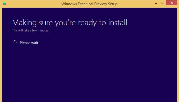 Wil je je huidige Windows-installatie upgraden, start dan de pc zonder de usb-stick op. Zorg, voordat je echt begint, dat al je belangrijke bestanden zijn geback-upt, mocht er iets misgaan. Zodra Windows gestart is, plaats je de usb-stick en open je het bestand Setup.exe van de verwisselbare schijf. Nadat een tellertje naar 100 is gelopen, dien je akkoord te gaan met de licentievoorwaarden en krijg je na een paar laadvenstertjes de mogelijkheid om je bestanden mee te nemen met de installatie. Kies of je dit wilt en druk op Next. Er verschijnt nog een laadvenster dat vrij lang duurt ...