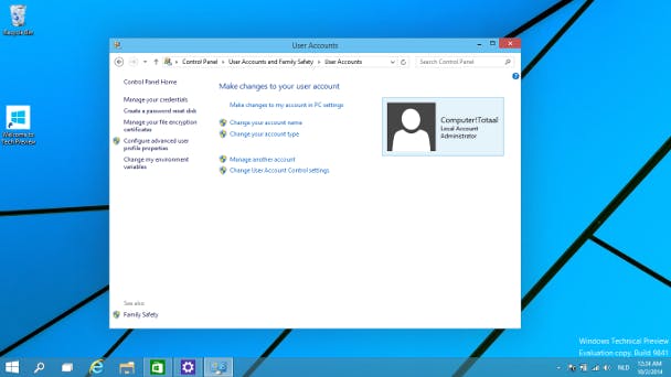 In deze workshop hebben we Windows 10 geïnstalleerd zonder Microsoft-account omdat deze optie geniepig verstopt zit. Windows 10 is echter een stuk completer als je wel je Microsoft-account koppelt aan het besturingssysteem. Zo is de OneDrive cloudopslag fraai geïntegreerd en worden e-mail, contactpersonen en de agenda uit je account gekoppeld aan de desbetreffende apps. Ook kun je pas apps downloaden uit de applicatiewinkel als je ingelogd bent. Maak je echter geen gebruik van deze Microsoft-diensten en appwinkel, dan voegt het account niets toe. Je voegt een Microsoft-account toe (of verwijdert dit) in Control Panel / User Accounts.