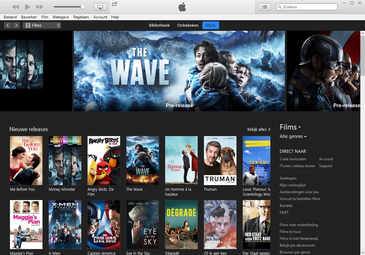 Naar eigen zeggen biedt Apple in de iTunes Store maar liefst 85.000 titels te huur en te koop aan. Het gaat hierbij uitsluitend om films, dus voor series ben je bij iTunes aan het verkeerde adres. Veel recente titels uit de catalogus van Pathé Thuis zien we ook terug in Apples verhuurwinkel. In tegenstelling tot Pathé Thuis zijn alle recente titels wel in HD-kwaliteit beschikbaar. Bovendien ligt het tarief van 4,99 euro voor een kersverse film in HD een euro lager dan veelal het geval is bij Pathé Thuis. Wanneer je besluit om een film te huren, heb je dertig dagen de tijd om hem te bekijken.