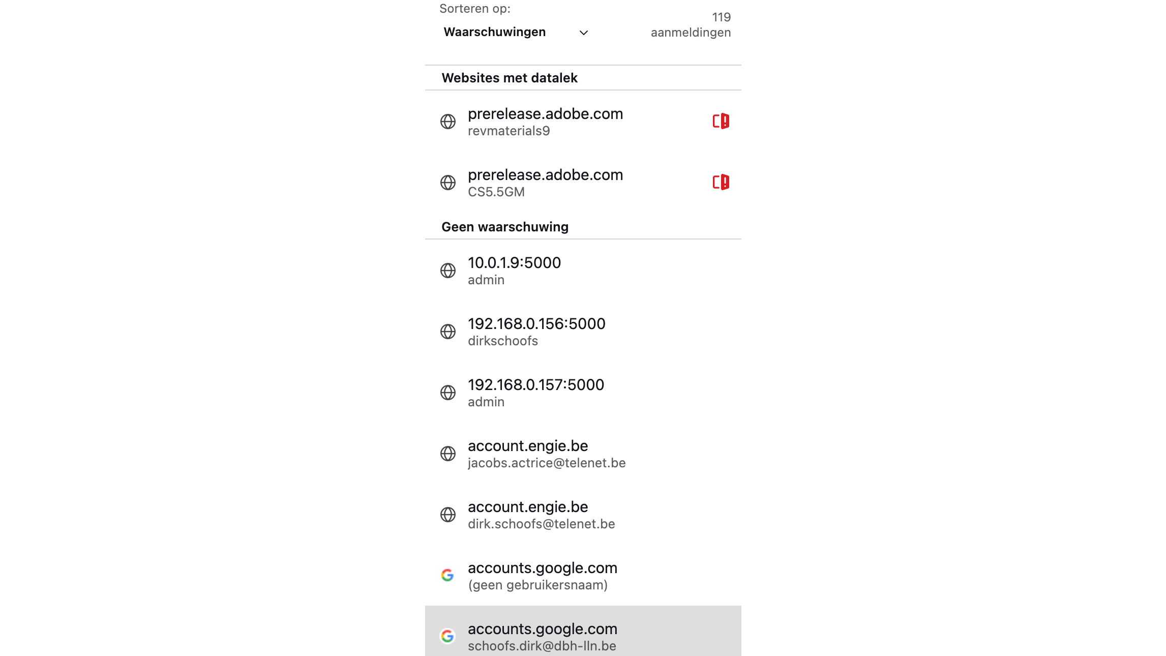 In Microsoft Edge klik je op de drie puntjes rechtsboven. Vandaar kun je de Instellingen openen. In het onderdeel Profielen kijk je naar Uw Profiel, meer bepaald naar de Profielinstellingen. Scrol naar beneden en open de Wachtwoorden. Bovenaan in de lijst staan de gelekte wachtwoorden. Klik op Details van lekkage weergeven en dan lees je bij welke diensten de lekken hebben plaatsgevonden. Door op het oogje te klikken, kun je de wachtwoorden die gelekt zijn zelfs lezen. Je kunt de waarschuwing negeren, verwijderen of je kunt zo’n wachtwoord meteen veranderen waardoor je opnieuw veilig bent.