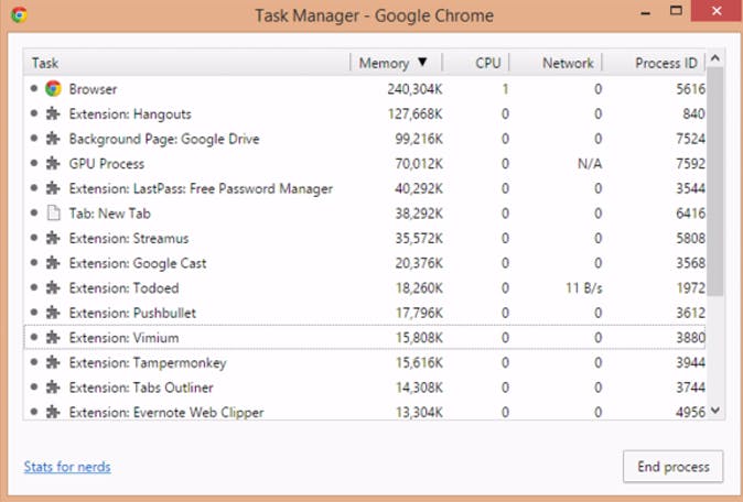 Er zit echter een nadeel aan mijn enthousiasme. Extensies en apps zijn erg leuk, maar ze kunnen ook erg veel bronnen in beslag nemen waardoor je browser trager wordt. (En daarmee bedoel ik met name advertentieblockers.)