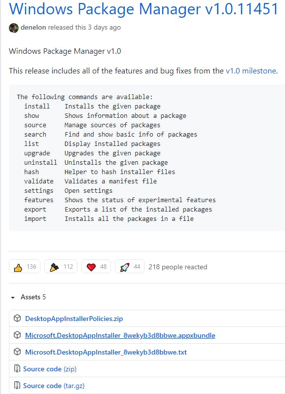 Download en installeer Windows Package Manager 1.0. Een dubbelklik op het gedownloade bestand Microsoft.DesktopAppInstaller_[…].appxbundle is voldoende. Op deze webpagina vind je ook een overzicht van de beschikbare commando’s.