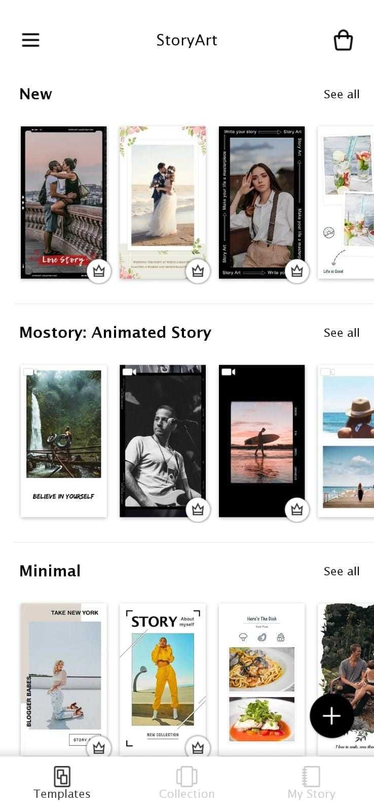 Ook voor StoryLab geldt dat je voor bepaalde templates moet betalen. Desalniettemin is deze app geschikter om mee te beginnen. Hier zijn namelijk minder betaalde templates en ook de interface van de app is overzichtelijker. Een handigheidje waarin StoryLab zich onderscheidt van StoryArt, is dat ze ook templates aanbieden die de juiste afmetingen hebben voor de feed van Instagram. Zo kun je dus makkelijk op zowel je story als op je feed collages plaatsen.
