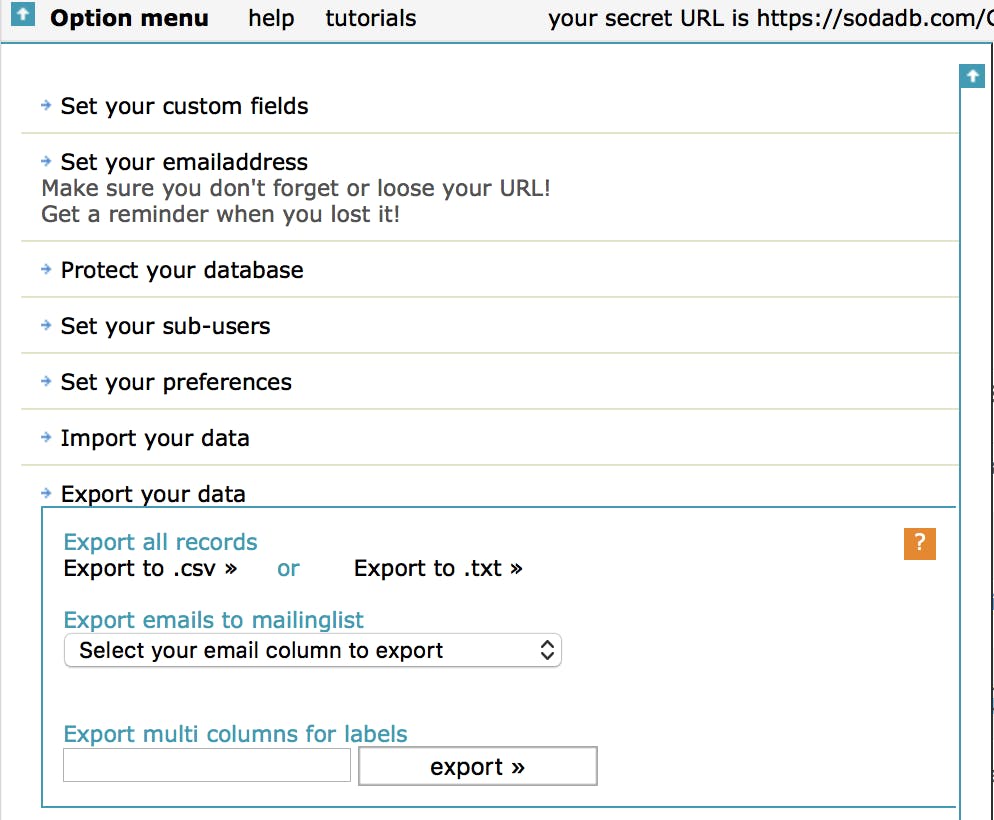 In het Option menu zit trouwens een handige export-functie om alle of uitsluitend de gevonden records te exporteren naar csv- of txt-bestanden. Wanneer records e-mailadressen bevatten, kun je zelfs rechtstreeks exporteren naar een mailinglijst. En voor wie nog ouderwets adres-etiketten wil afdrukken, is er de functie Export multiple columns for labels.