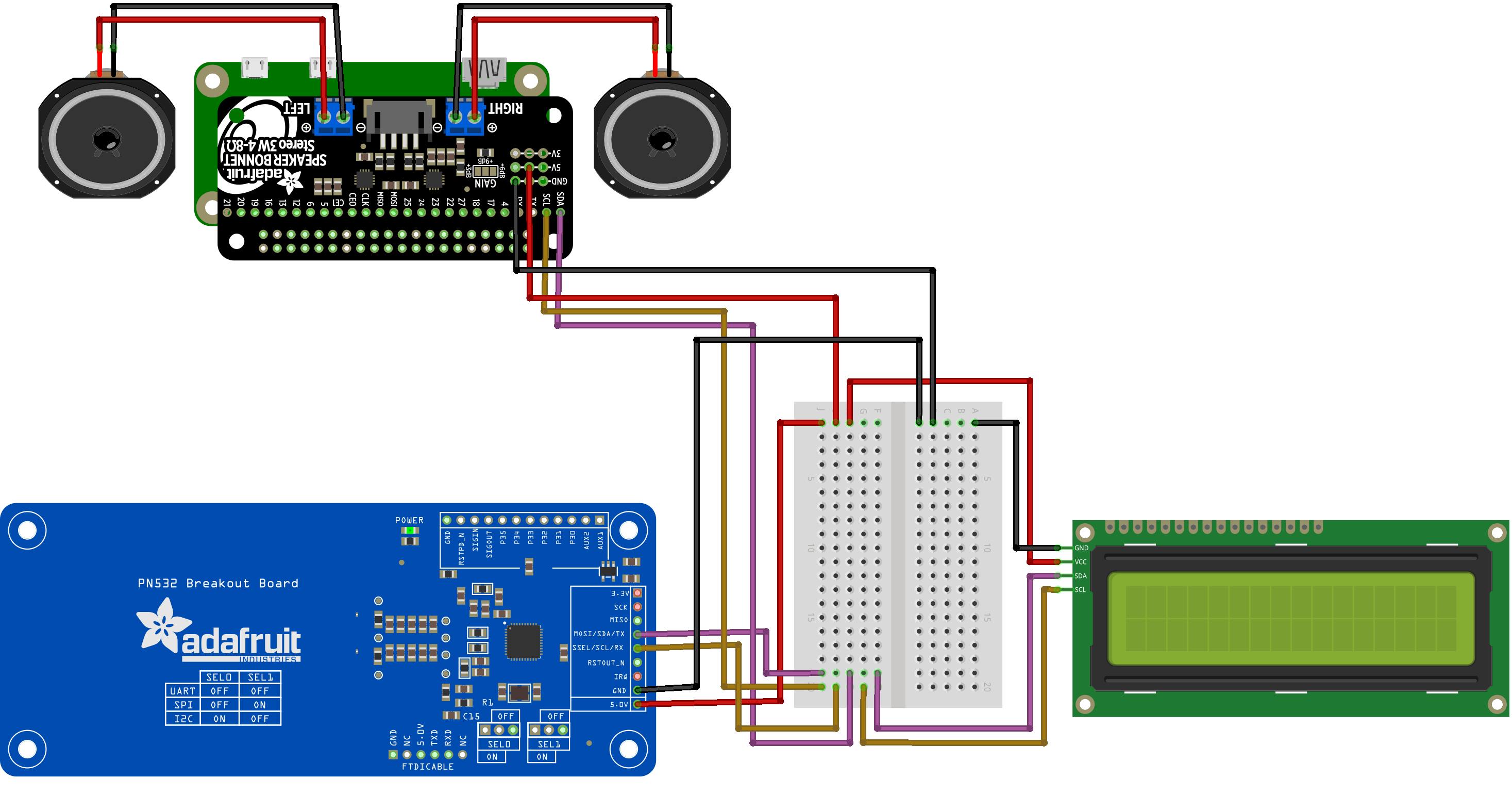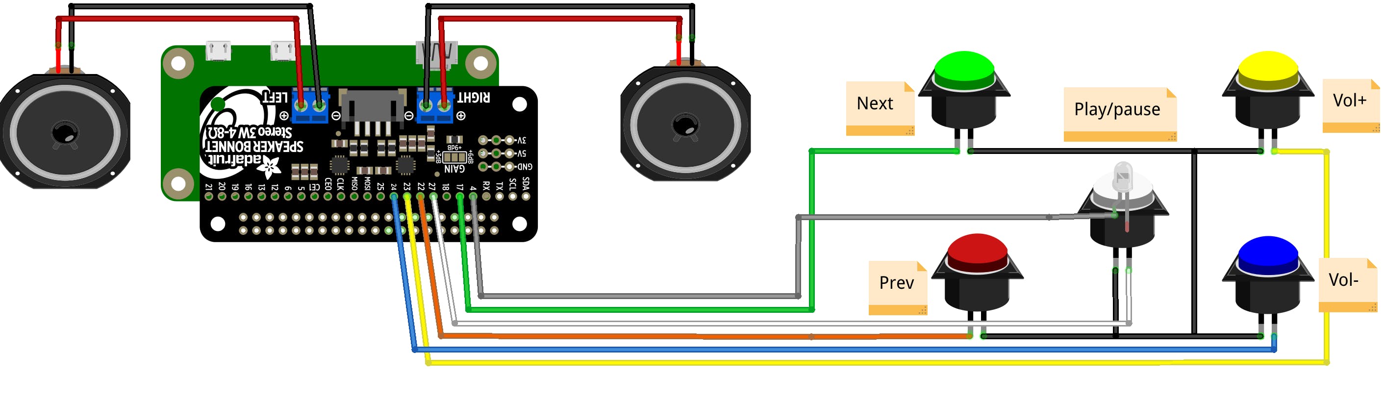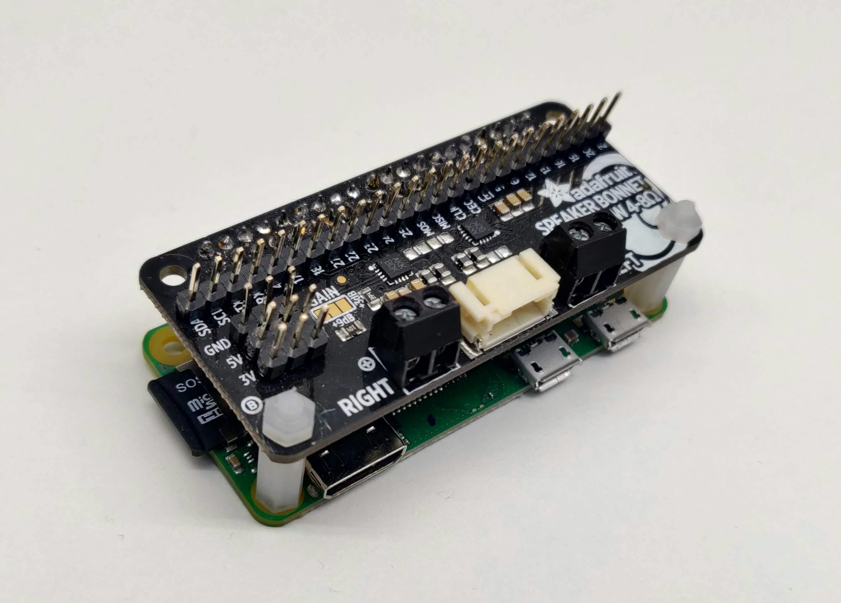 - Adafruit Speaker Bonnet (€ 15,50 bij Kiwi Electronics);