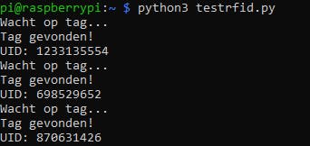 Met het script testrfid.py kun je voor elke tag die je tegen de lezer houdt het unieke ID zien. Noteer deze ID’s, want je hebt ze nodig in de definitieve versie van het script voor de muziekspeler.