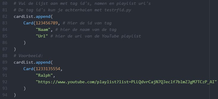 Het uiteindelijke script dat ervoor zorgt dat alle onderdelen samenwerken heet ytplayer.py. Het gaat te ver om in dit artikel alle programmode in dit bestand toe te lichten. Daarom staan er commentaarregels in de code, beginnend met een hekje #. Daarmee wordt hopelijk duidelijk genoeg uitgelegd hoe het script werkt. Ook vind je rond regel 80 de plek waar je zelf de ID’s van de rfid-tags en de links naar de bijbehorende YouTube-playlists moet invullen.