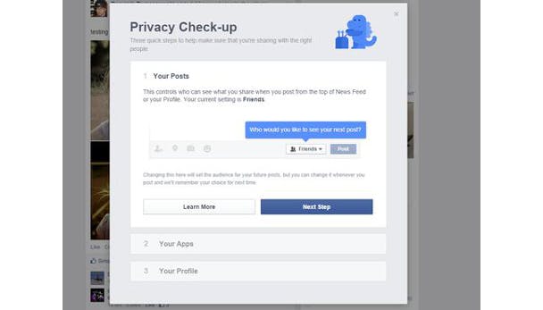 Als je op de eerste optie klikt wordt de privacy wizard geopend. Deze wizard leidt je door de verschillende manieren om aan te passen welke delen van je profiel voor iedereen zichtbaar zijn.