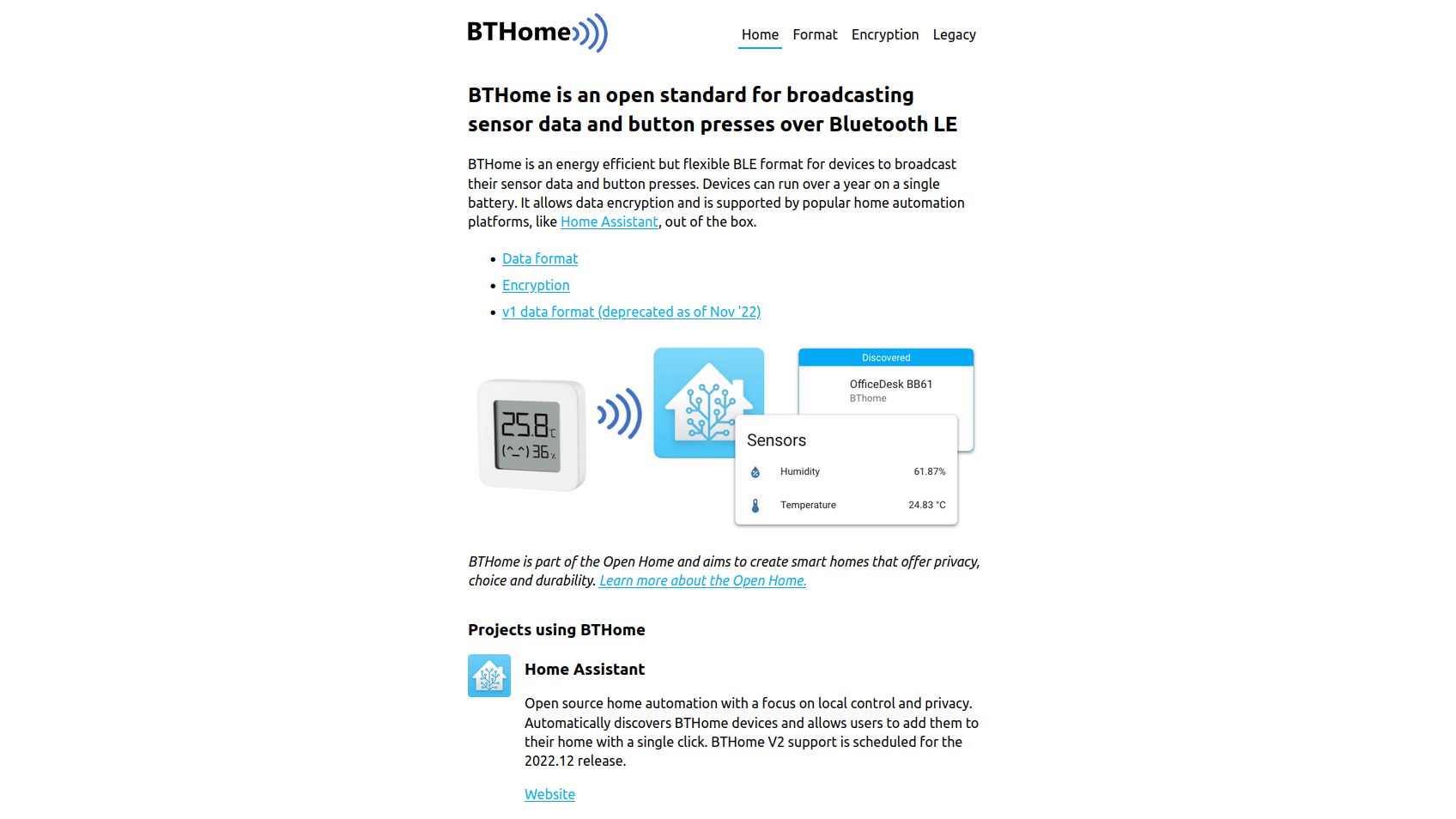 De makers van Home Assistant besloten daarom om een formaat te bedenken dat allerlei soorten sensors ondersteunt: BTHome. Apparaten die bluetooth-data uitsturen volgens dit formaat, worden dan automatisch door Home Assistant herkend aan de hand van de BTHome-integratie.