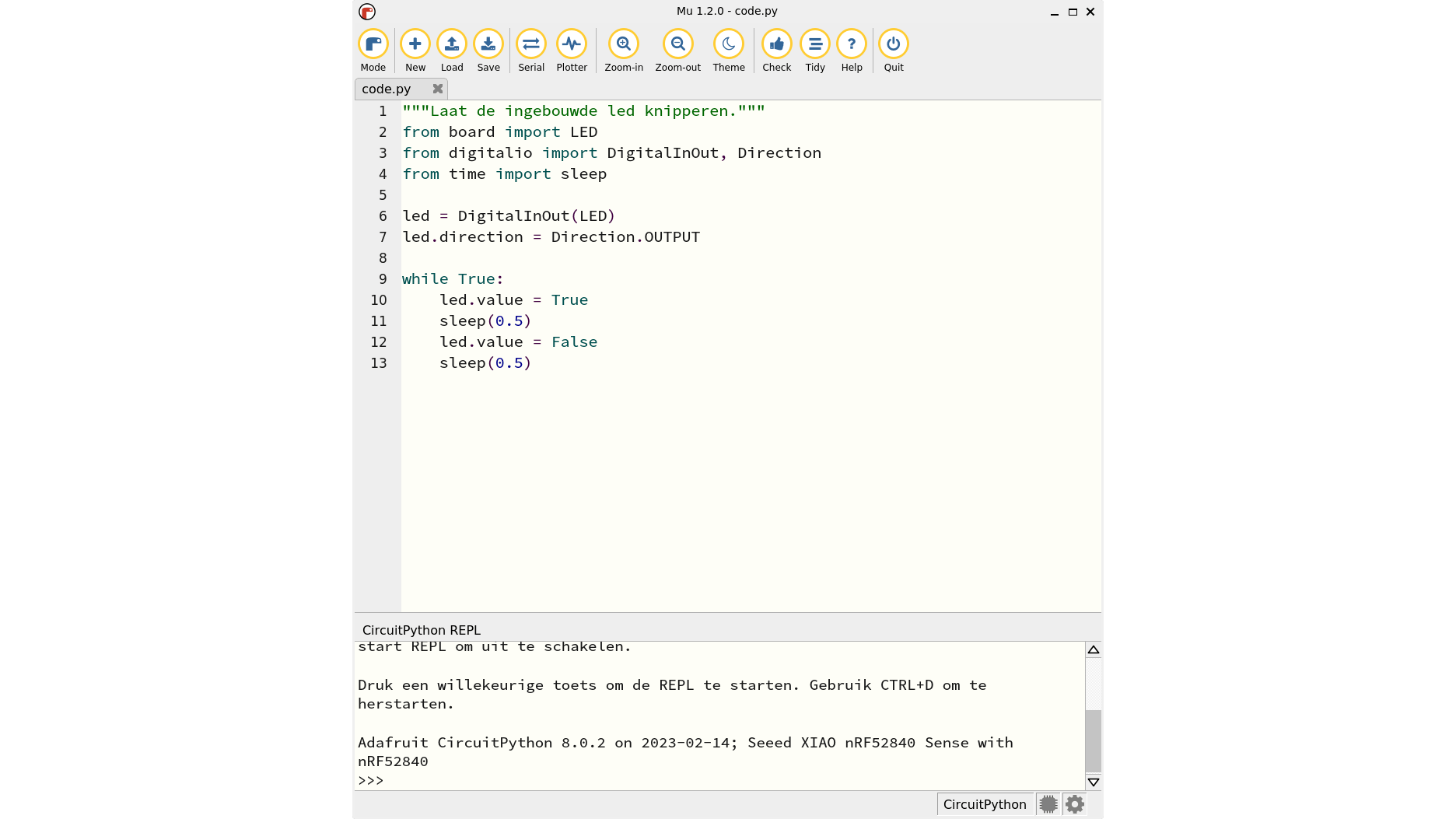 CircuitPython op de Seeed XIAO nRF52840 Sense