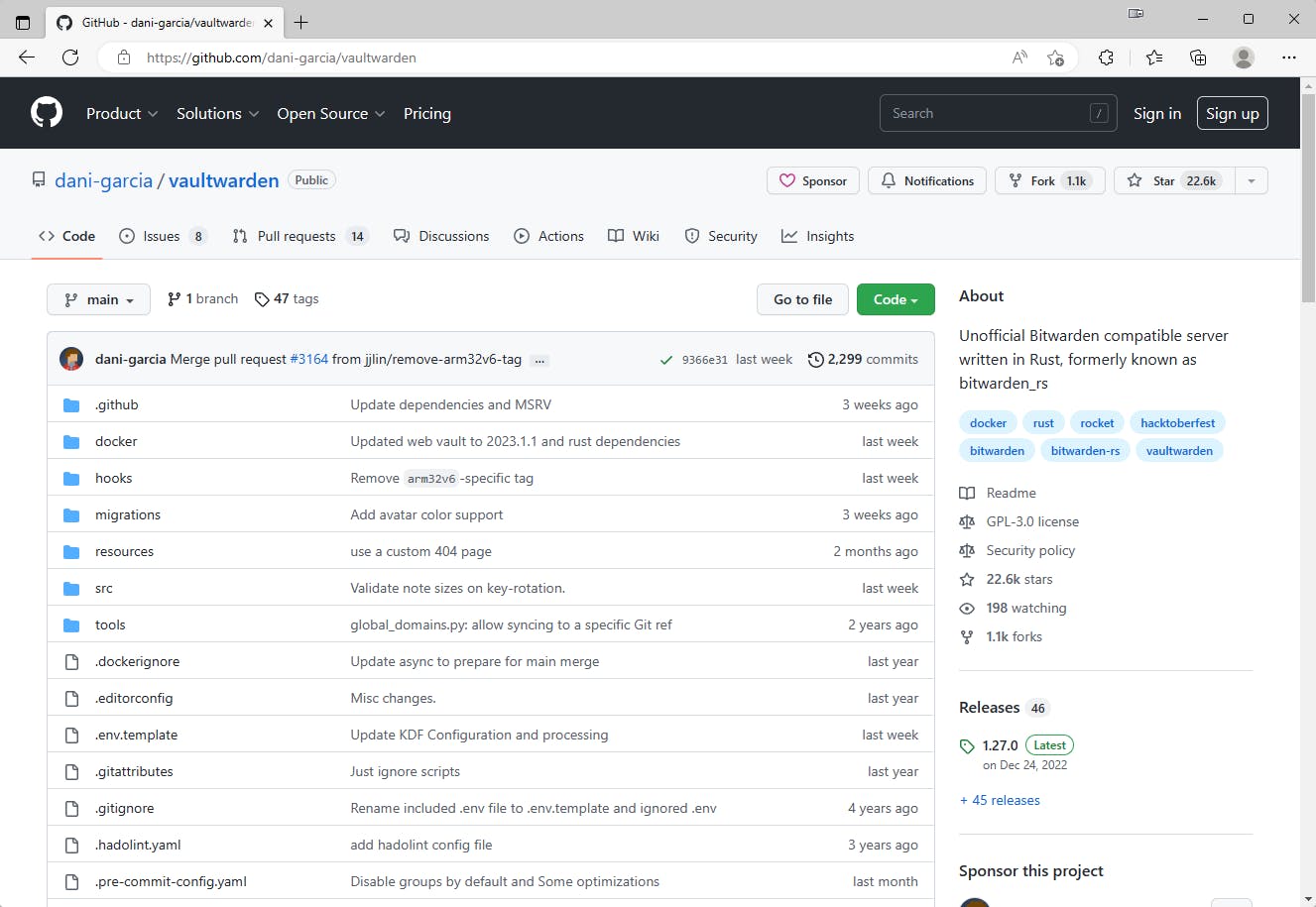 Vaultwarden: lichtgewicht Bitwarden-server Voor onze Bitwarden-server gebruiken we niet de officiële server maar het opensource-alternatief Vaultwarden, eerder bekend als bitwarden_rs. Je kunt het project vinden op GitHub. Het is een lichtgewicht Bitwarden-server die je eenvoudig zelf kunt hosten. De eisen zijn bescheiden in vergelijking met de officiële server. Veel mensen gebruiken zelfs een Raspberry Pi, inclusief de Zero W!