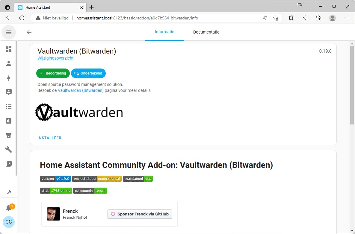 Heb je Home Assistant? Dan kun je Vaultwarden eventueel via een community-add-on installeren. De vereiste repository wordt tegenwoordig standaard toegevoegd en geactiveerd.