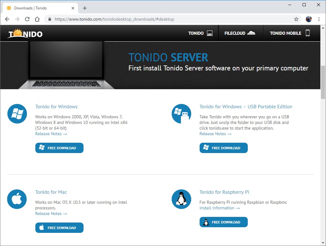 Google en Microsoft bieden met respectievelijk Drive en OneDrive weliswaar gebruiksvriendelijke online opslagdiensten aan, maar helaas nemen deze bedrijven het niet zo nauw met je privacy. Geef je persoonlijke gegevens liever niet in handen van een derde partij? Dankzij het gratis softwarepakket Tonido tuig je een eigen cloudomgeving op. Bijkomend voordeel is dat je geen rekening hoeft te houden met datalimieten, zodat je op afstand via de cloud voortaan ook moeiteloos video’s opvraagt. De serversoftware van Tonido is beschikbaar voor verschillende platformen, waaronder Windows, macOS, Linux en zelfs Raspberry Pi. In dit artikel gaan we aan de slag met de Windows-versie. Surf hiernaartoe en klik onder Tonido for Windows op FREE DOWNLOAD. Sla het exe-bestand op en start vervolgens de installatie. Doorloop alle stappen om de installatie in orde te maken.