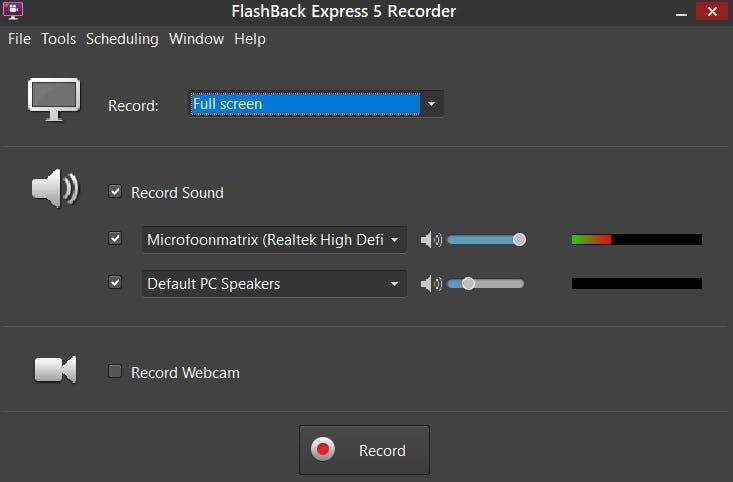 Deze software is een stuk overzichtelijker dan die van de OBS Studio maar heeft in tegenstelling tot bovengenoemde software iets minder opties. De interface is echter ontzettend gebruiksvriendelijk en een opname van je computerscherm maken is binnen drie klikken geregeld. Je hoeft slechts op ‘record’ te drukken en de opname start automatisch. Je kunt de opname stopzetten waarna je je video eenvoudig kunt opslaan op een gewenste locatie. Dit bestand is in eerste instantie een fbr. Bestand. Je kunt dit echter in FlashBack Express zelf afspelen en linksboven onder ‘file’ exporteren als een .mp4 bestand.