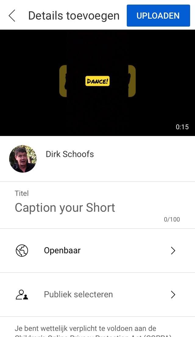 Met de rode knop start je de opname en straks gebruik je die om te stoppen. Tik op Ongedaan maken als je niet tevreden bent en je nog een keer opnieuw wilt beginnen. Ben je wel tevreden? Dan bevestig je met het vinkje. Tik op Volgende om een titel van maximum honderd tekens aan de video toe te voegen. Je kunt daarbij een tekstkleur kiezen en met Tijdlijn bepaal je wanneer de tekst moet verschijnen en verdwijnen. In de volgende stap voeg je de details toe voor het uploaden. Als je een video hebt gemaakt die langer duurt dan zestig seconden, is er de functie Bewerken tot een Short om je video in te korten. Dan bepaal je of je filmpje openbaar gaat of alleen naar de mensen die van jou de link ontvangen. Tenslotte kun je nog heel precies instellen op welk tijdstip de Short zichtbaar wordt voor de wereld.