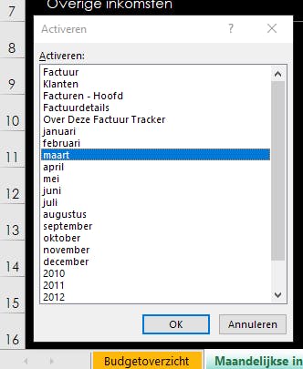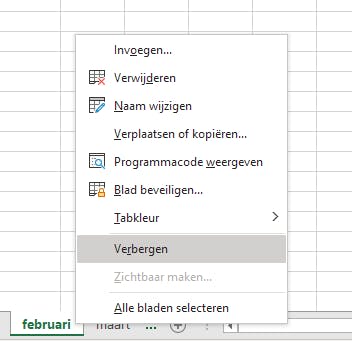 Wil je bepaalde werkbladen verbergen? Dat kan. Klik met de rechtermuisknop op tabblad dat uit het zicht moet verdwijnen en kies Verbergen in het contextmenu. Om een verborgen werkblad weer terug naar de oppervlakte te brengen, klik je met de rechtermuisknop op een van de andere tabbladen en selecteer je de opdracht Zichtbaar maken. Waren er meerdere werkbladen verborgen, dan zal Excel in een pop-upvenstertje vragen welk werkblad je tevoorschijn wilt halen.