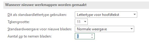 Hoeveel werkbladen toont Excel wanneer je met een nieuwe werkmap begint? Dat hangt af van de instellingen. Klik op in het lint het tabblad Bestand. Daarna selecteer je onderaan de Opties. In het venster Opties voor Excel kies je in de linkerkolom Algemeen en dan zoek je in het onderdeel Wanneer nieuwe werkmappen worden gemaakt de opdracht Aantal op te nemen bladen. Gebruik het tellertje om aan te geven hoeveel werkbladen een nieuwe werkmap moet bevatten.