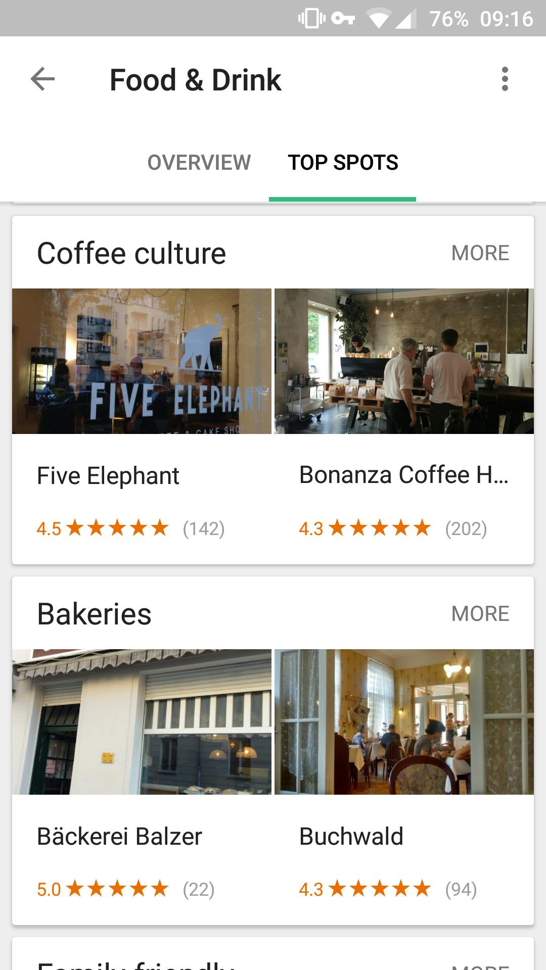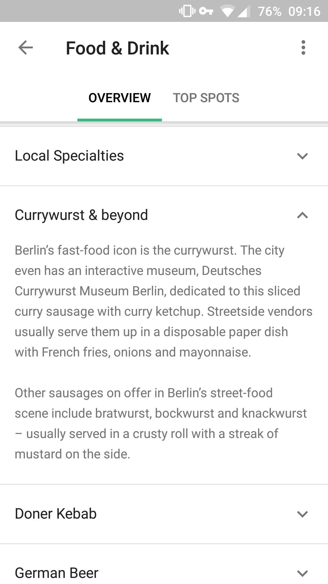 Je wilt natuurlijk niet alleen weten wát je kunt eten, maar ook wáár je de culinaire hoogstandjes kunt vinden. Dat kan door boven naar 'Top spots' te gaan. Je vindt dat restaurants in de omgeving, die gebaseerd zijn op de gegevens van Google Maps. Dat betekent dat je ook gelijk reviews te zien krijgt, inclusief de beoordelingen van gasten.